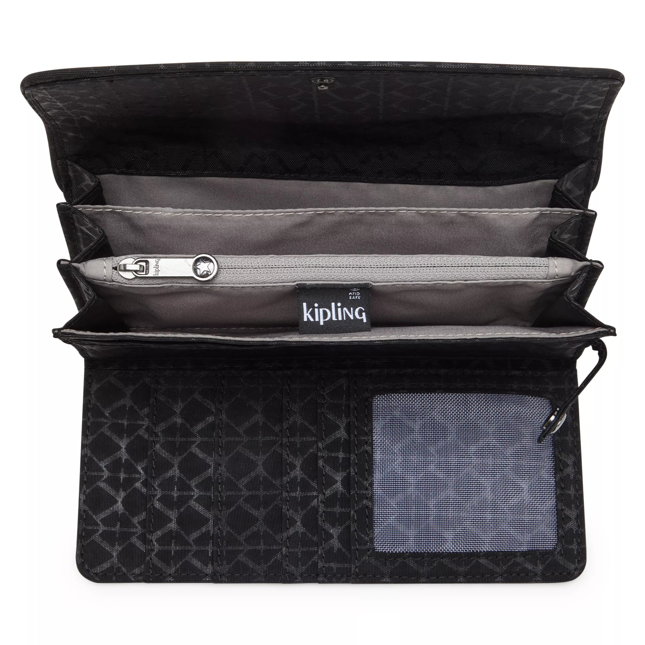 Money Land is a RFID wallet packed with space and multiple compartments for optimal organization! Adorned in durable nylon. this wallet features cash compartments. ten credit card slots. an interior zip pouch. and an ID slot for your driver’s license or work ID. The snap button closure is designed to keep your essentials safe and secure. making it a must-have wallet for travelers and anyone who is always on-the-go. RFID technology prevents hackers from skimming data wirelessly by creating a virtual shield to protect your chipped cards.